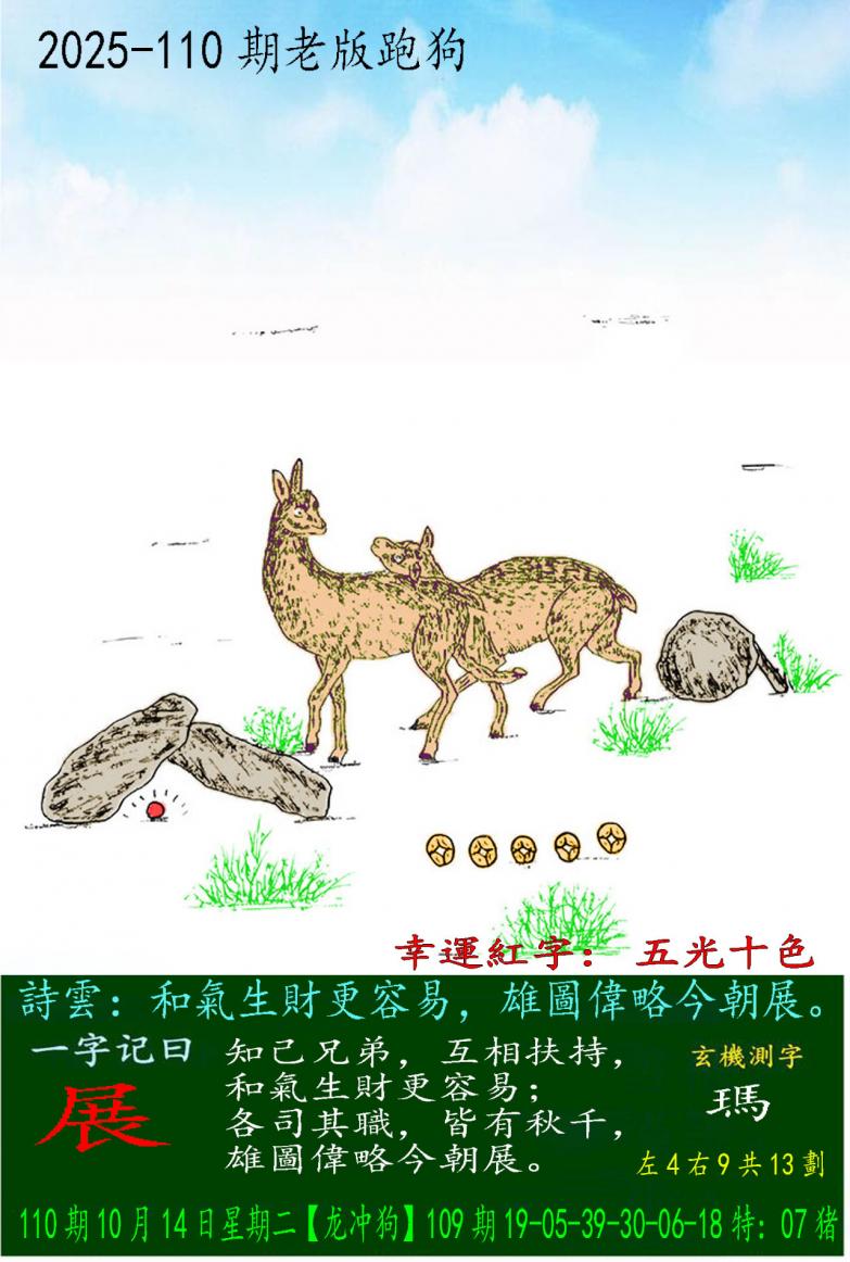 110期老版跑狗一字記之曰:【展】 詩雲:和氣生財更容易,雄圖偉略今朝展。