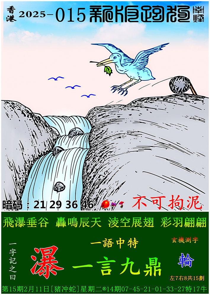 015期新版跑狗一字記之曰:【瀑】 玄機測字:《輪》 一語中特:一言九鼎