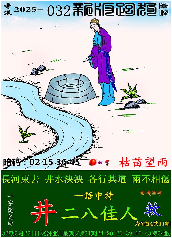 032期新版跑狗一字記之曰:【井】 玄機測字:《軟》 一語中特:二八佳人