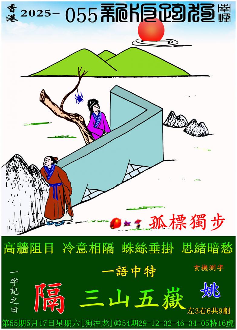 055期新版跑狗一字記之曰:【隔】 玄機測字:《姚》 一語中特:三山五嶽
